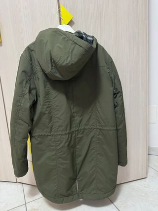 Giacca verde Benetton per ragazzo, taglia 13/14 anni. Ideale per le giornate più fresche. - Cappuccio foderato. - Chiusura con bottoni. - Coulisse in vita per regolare la vestibilità. - Tasche frontali.