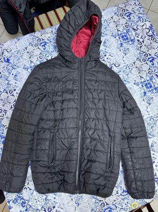Piumino nero con cappuccio, perfetto per i ragazzi. - Chiusura con zip frontale. - Due tasche laterali con zip. - Imbottitura trapuntata.
