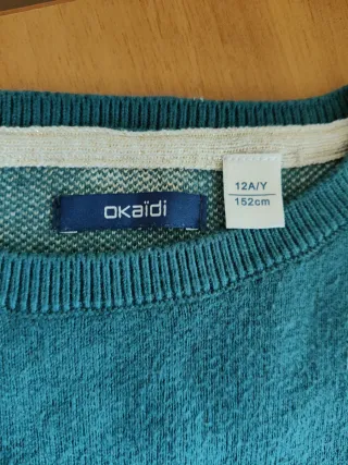Gilet bambino 10-11 anni, imbottito, colore tra il blu e il verde, marca Quechua originale, lateralmente ci sono 2 fasce elastiche, tasche con zip, molto comodo. In perfette condizioni, come nuovo. Buona vestibilità