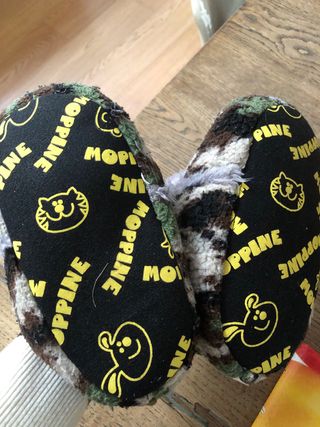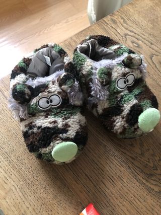 Morbide ciabatte per bambini con fantasia camouflage. - Taglia 29/31. - Design divertente con occhi e naso. - Fodera interna in tessuto.