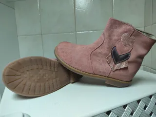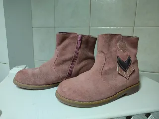 Stivaletti scamosciati per bambina, taglia 32, marca Sergent Major. Perfetti per completare ogni outfit. - Materiale scamosciato color rosa cipria. - Dettagli a forma di cuore glitterato e piume. - Suola in gomma antiscivolo.