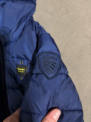 Bellissimo giubbino Blauer originale per bambino di 12 mesi (misure i foto) Ottime condizioni , solo dalla linguetta della zip si è tolta un po’ la vernice e ci sono due piccolissimi buchetti sul bordo interno di una manica , che non si vedono, e’ tutto nelle ultime due foto - Colore blu - Cappuccio - Chiusura con zip - Tasche laterali