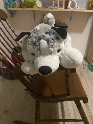 Morbido peluche a forma di lupo husky, perfetto per decorare o coccolare. Il suo aspetto lo rende un simpatico compagno. - Colore bianco e grigio. - Materiale morbido al tatto.