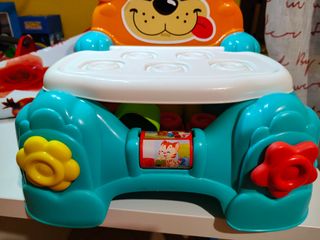 Poltroncina Clemmy a forma di cane, ideale per i più piccoli. Un simpatico compagno di giochi. - Design colorato e accattivante. - Seduta comoda e sicura. - Elementi interattivi per stimolare la curiosità. - Contiene 10 blocchetti di costruzioni morbidi.