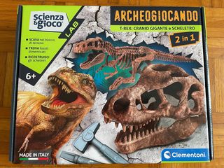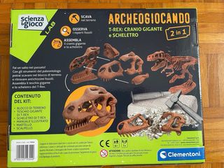 Kit scientifico Archeogiocando T-REX: cranio gigante e scheletro Scienza & Gioco Lab di Clementoni. Gioco nuovo, scatola sigillata/mai aperta. ottima idea per regalo di Natale. - Scava nel blocco di terreno. - Trova fossili dimenticati. - Ricostruisci gli scheletri. - Età consigliata: 6+. - Made in Italy.