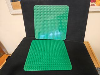 Due piastre base verdi 24x24 per costruzioni con pezzi Duplo. Presentano segni di usura e tre parti infossate, ma sono perfettamente funzionali. Prezzo per entrambe.