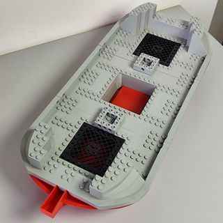 Scafo per barca Lego, compatibile con set Pirati, Galeone o Veliero. - Base grigia per imbarcazione. - Dettagli in rosso e nero. - Costruito con mattoncini Lego.