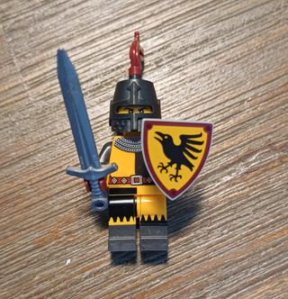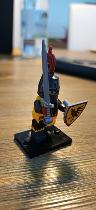 Bellissima minifigure Lego del Cavaliere del Torneo, dalla serie 20. - Minifigure Lego in ottime condizioni. - Include spada e scudo. - Scudo con simbolo di corvo. - Armatura dettagliata.