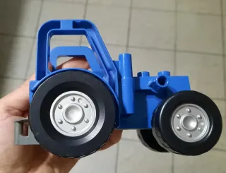 Trattore giocattolo in plastica blu, ideale per i più piccoli. - Design colorato e robusto. - Ruote nere con cerchioni grigi.