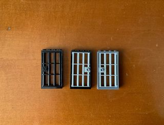 LEGO Castle lotto 23 3 gate con i rispettivi frame. Gate: Door 1 x 4 x 6 Barred with Stud Handle Item No: 60621 - uno di colore nero e due di colore light grey Frame: Door, Frame 1 x 4 x 6 with 2 Holes on Top and Bottom Item No: 60596 uno di colore dark bluish grey e due di colore nero in ottime condizioni, come da foto