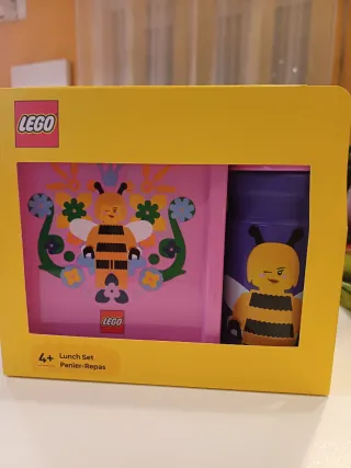 Set pranzo Lego per bambini con simpatico design a forma di ape. Perfetto per la scuola o le gite. - Include lunch box e borraccia. - Decorazione colorata a tema ape e fiori. - Logo Lego presente.