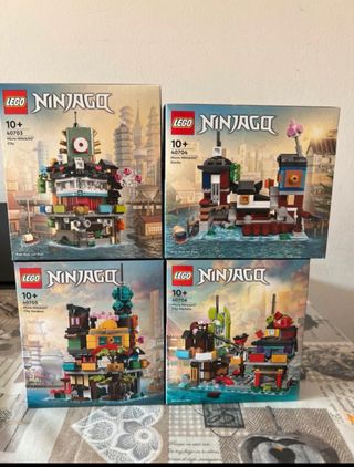 Vendo 4 set Lego Ninjago Micro City. - Set 40703 Micro Ninjago City - Set 40704 Micro Ninjago Docks - Set 40705 City Gardens - Set 40706 City Markets Nuovi sigillati