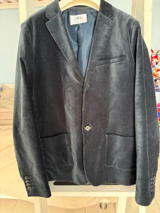 Elegante giacca Zara in velluto blu. - Tessuto morbido e lucido. - Chiusura con un bottone. - Tasche frontali. - Dettaglio bottoni sui polsini. Giacca velluto blu Zara Taglia 13-14 anni elefante Usata una volta Formula visto piaciuta a disposizione per ulteriori informazioni e foto Non si accettano resi