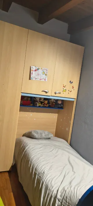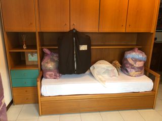 Vendo armadio a ponte in legno con letto singolo integrato, composto da 2 moduli: Misure primo ponte: Larghezza 255 cm Profondità 60 cm Altezza 260 cm Misure secondo ponte: Larghezza 148 cm Profondità 60 cm Altezza 260 cm Struttura solida e molto capiente Mensole, cassetti e barra appendiabiti Letto singolo integrato Ideale per cameretta bambini/ragazzi o casa vacanze In buone condizioni generali Smontaggio e trasporto a carico dell’acquirente Prezzo: 230 € trattabili