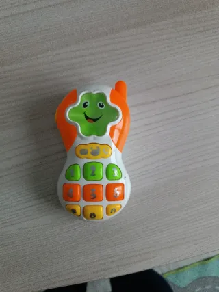 Telefono giocattolo colorato per bambini, con simpatico design a forma di ranocchia. - Tasti numerici e lettere. - Suoni e luci. - Manico per trasporto.