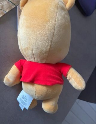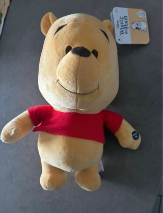 Morbido peluche di Winnie the Pooh, il classico personaggio Disney. Perfetto per i fan di tutte le età. - Morbido tessuto giallo. - Indossa la sua iconica maglietta rossa. - Dettagli ricamati sul viso. Con cartellino e mai usato solo conservato in luogo idoneo senza umidità NON FUNZIONA il meccanismo che premendo la mano dovrebbe farlo emettere dei suoni