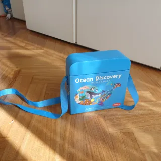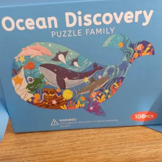 Puzzle a tema marino Ocean Discovery con una bellissima illustrazione di una famiglia di balene e creature marine. - 108 pezzi - Scatola a forma di cubo con manico e tracolla per un facile trasporto - Illustrazione colorata e dettagliata