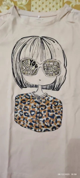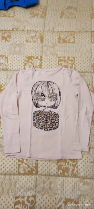 T-shirt a maniche lunghe per bambina, con un simpatico disegno. Taglia 11-12 anni Altezza cm.145-152 - Colore: rosa pallido. - Maniche lunghe.