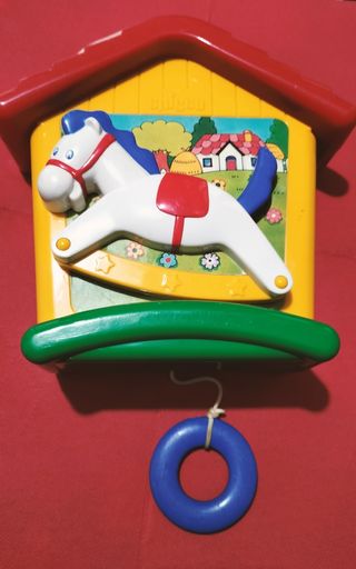 Carillon chicco vintage anni 2000 Si può appendere e tirando la cordicella inizia una dolce melodia e il cavallo inizia a muovere la testa e coda Presenta piccolissimi graffietti di colore Non occorrono batterie