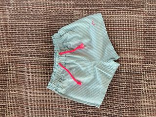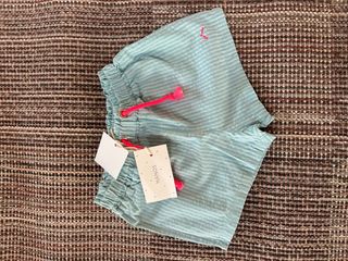 Bellissimo costume Nanos a righe celestine. Nuovi con cartellino. - Fantasia a righe sottili. - Elastico in vita con laccetti fucsia. - Logo Nanos ricamato. - NUOVI CON CARTELLINO - taglia 9 mesi