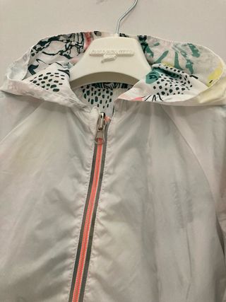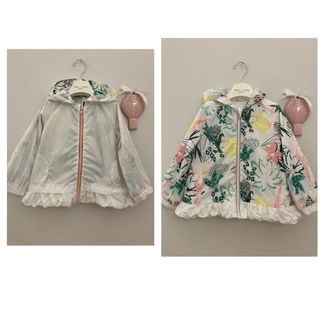 Bellissimo giubbino reversibile per bambina, perfetto per la mezza stagione. - Due lati: uno bianco pe l'altro con stampa floreale. - Chiusura con zip. - Cappuccio. - Dettaglio volant sul fondo. - Ottimo stato.