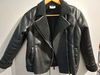 Caldo giubbotto per bambina in similpelle nera, perfetto per le giornate più fredde. - Fodera interna in morbida pelliccia sintetica. - Chiusura con zip. - Collo ampio in pelliccia sintetica.