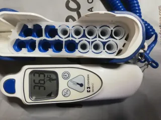 Termometro timpanico Covidien Genius 2, ideale per misurazioni rapide e precise. - Design ergonomico. - Display digitale chiaro. - Custodia protettiva inclusa.