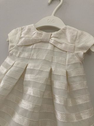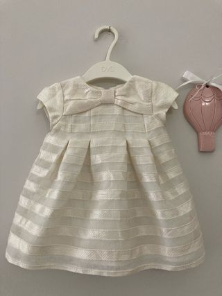Bellissimo vestito per bambina firmato Mayoral, perfetto per occasioni speciali. - Colore avorio - Tessuto a righe con dettagli luminosi - Fiocco decorativo sul davanti - Maniche corte