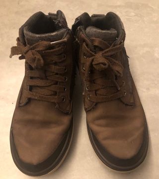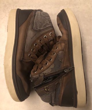 Stivaletti Geox per bambino in taglia 37. - Materiale in pelle marrone. - Chiusura con lacci e zip laterale. - Fodera interna in tessuto grigio.