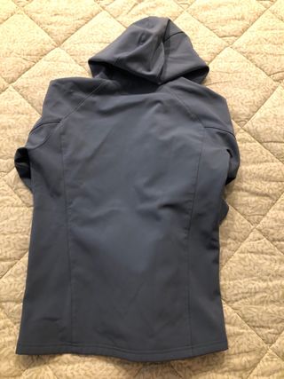 Giacca tecnica Quechua per bambino, adatta per età 12-13 anni. - Colore grigio/blu. - Zip frontale. - Cappuccio. - Tasche con zip.