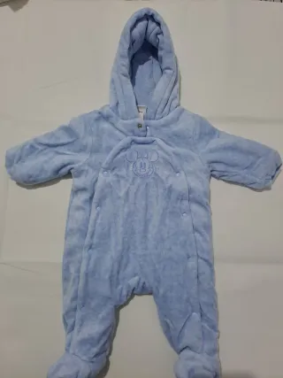 Morbido pagliaccetto per neonato con cappuccio, a tema Mickey Mouse. Perfetto per tenere al caldo i più piccoli. - Colore azzurro. - Tessuto in pile. - Chiusura con bottoncini. - Piedini integrati.