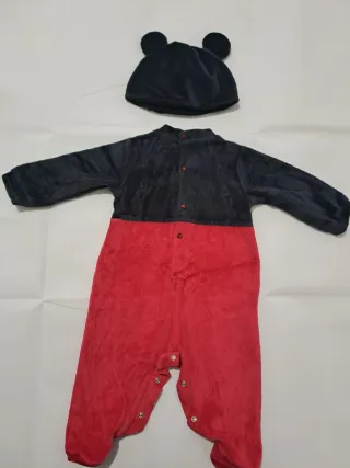 Adorabile tutina in ciniglia con cappellino coordinato, a tema Topolino. - Taglia 0-3 mesi (56 cm). - Morbido tessuto in ciniglia. - Dettagli ricamati di Topolino e fiocco rosso. - Chiusura con bottoncini a pressione.