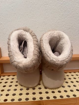 Morbide scarpine per neonata, perfette per i mesi più freddi. Il design avvolgente e la fodera interna assicurano calore e comfort. - Tomaia in tessuto lavorato a maglia. - Interno foderato in morbido pile. - Colore neutro, facile da abbinare.