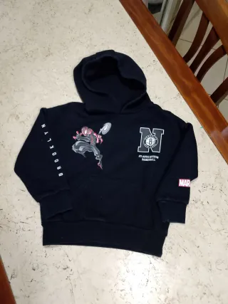 Felpa nera con cappuccio, taglia 5 anni, con stampa di Spider-Man e logo Brooklyn. - Stampa Brooklyn sulla manica sinistra. - Stampa N con Brooklyn Atlantic Division Basketball sul petto. - Logo Marvel sulla manica destra.