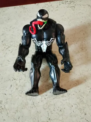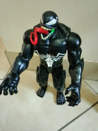 Action figure del personaggio Venom, ispirato all'universo Marvel. La figura è realizzata in plastica lucida di colore nero. - Dettagli bianchi sul petto. - Lingua rossa prominente. - Occhi bianchi. - Denti affilati.