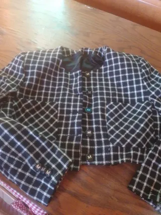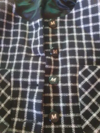 Giacca corta a quadri bianchi e neri, con fodera interna nera,misto lana - Chiusura con bottoni. - Dettagli con iniziale M sui bottoni e sui polsini. - Collo alla coreana.