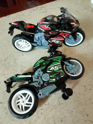 Set di due moto giocattolo. Moto giocattolo in miniatura Includono luci anche nelle ruote ed effetti sonori, come rumori del motore e musica pop