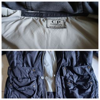 Piumino C.P. Company per bambino/a. - Taglia 10 anni / 140 cm. - Colore blu scuro. - Cappuccio integrato. - Chiusura con zip frontale. - Tasche laterali con patta e bottone. Per misure vedi foto.