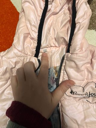 Giacchina imbottita per bambina, perfetta per le giornate più fresche. - Colore rosa brillante. - Cappuccio con dettagli a forma di orsetto. - Chiusura con zip. - Fantasia interna Love You.