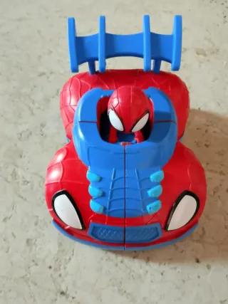 veicolo con figura di giocattolo "Spidey And His Amazing Friends". Il veicolo si trasforma da auto a moto Stringendo lo spoiler, la moto all'interno viene lanciata in avanti Include una figura di Spiderman