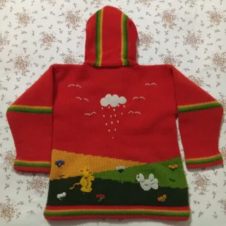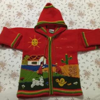 Maglione cardigan bambino o bambina Modello etnico, peruviano, con cappuccio, tasche, chiusura a zip e nappine. Colore rosso/arancio/ mattone con bellissimi ricami davanti e dietro Riporta misura 6, naturalmente dipende dalla fisicità individuale, tenete presente che è largo 35cm e lungo 42cm ▶️Contattatemi per altro abbigliamento bambini