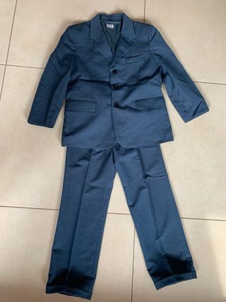 Completo per ragazzo: giacca e pantaloni In buono stato, usato poco. Per occasioni speciali, matrimoni, comunioni, cresime. Colore blu scuro a righe Misura rumena 36, corrisponde a 10 anni Misure in cm Giacca: Lunghezza giacca 61 cm Larghezza spalle 38 cm Lunghezza Manica 46 cm Pantaloni: 👖 Larghezza in giro vita 30,5 (elasticizzato) Lunghezza totale 81,5 cm