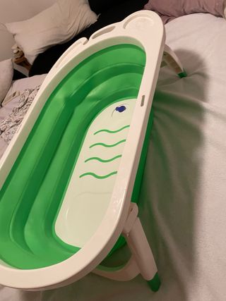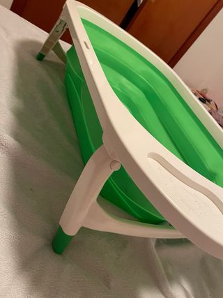 Bagnetta pieghevole per bambini, ideale per risparmiare spazio. È in buone condizioni ed è di colore verde. - Pieghevole per riporlo facilmente - Design leggero e portatile - Colore verde e bianco.