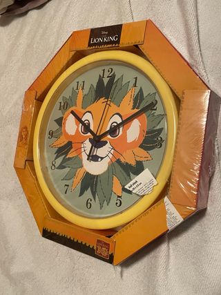 Bellissimo orologio da parete con l'immagine del Re Leone, in perfette condizioni. È un articolo nuovo di zecca e inutilizzato. - È un orologio da parete. - Colore giallo pastello. decorazione spaziale ideale per bambini o neonati. Nuovo articolo
