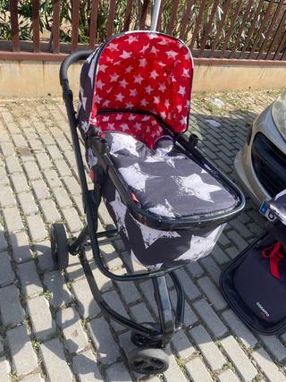 Passeggino per bambini Cosatto Giggle in 3 pezzi con una divertente stampa a stelle. - Include culla, passeggino e seggiolino auto. - Tessuto resistente e lavabile. - Telaio leggero e pieghevole. Si piega completamente