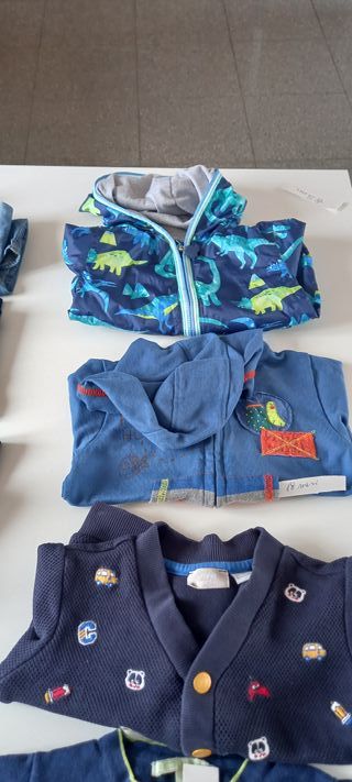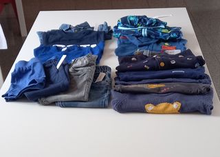 Lotto di vestiti per bambini in ottime condizioni, taglia 18/24 mesi, composto da: 3 pantaloni lunghi + 1 pantaloncino corto+ 3 maglioncini con manica lunga + 2 magliette con manica lunga + 2magliette con manica corta + 1 camicia jeans con manica lunga + 2 giubbotti con cappuccio e cerniera.