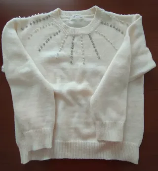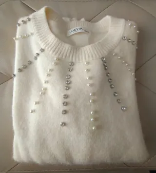 Maglione bianco con perle e strass