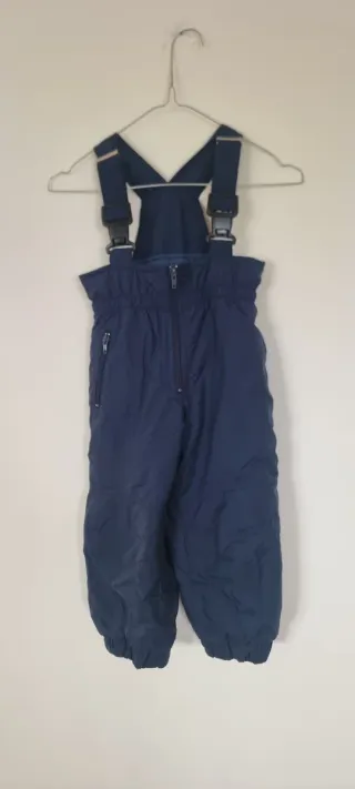 Tuta da neve blu per bambino, perfetta per le giornate fredde. - Bretelle regolabili con fibbie. - Chiusura frontale con zip. - Tasca laterale con zip.