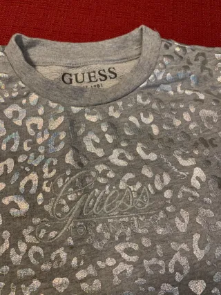 Felpa Guess con una distintiva stampa animalier. - Fantasia leopardata. - Colore grigio con dettagli argento.