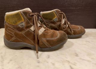 Chicco polacchine in camoscio marrone per bimbo, in buone condizioni, con plantarino Chicco all'interno. Le ultime foto mettono in risalto i difetti, dovuti all'uso. - Materiale: camoscio - Colore: marrone - Chiusura con lacci, misura 28